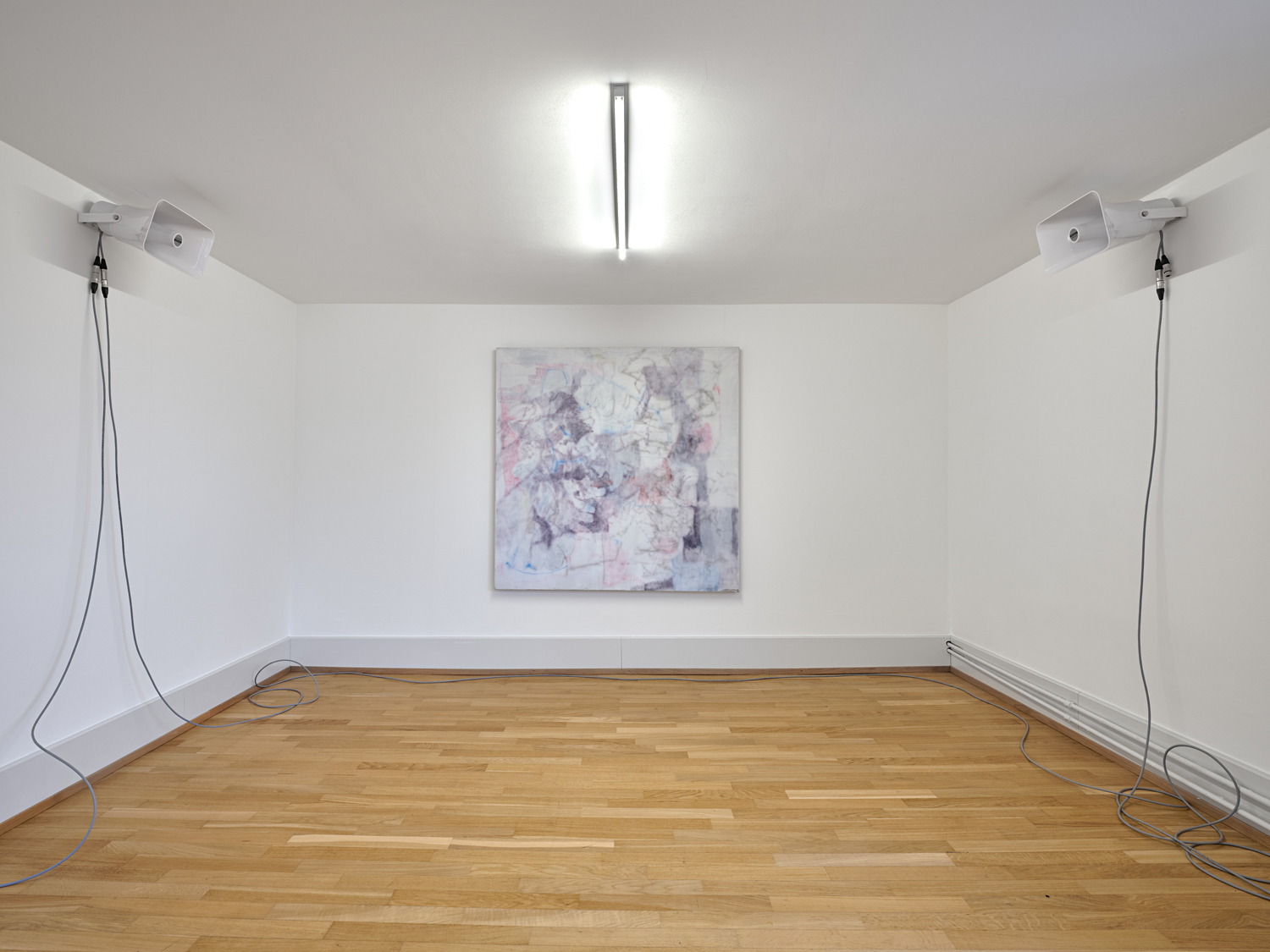 Exhibition View, ‘Stitches: A Haunted House and Other Ghost Stories’ at the Villa Bernasconi, 2026 / Photo by Nicolas Delaroche Studio. Dorota Gawęda & Eglė Kulbokaitė, Ectoplasm (1827), 2025, mixed technique on linen